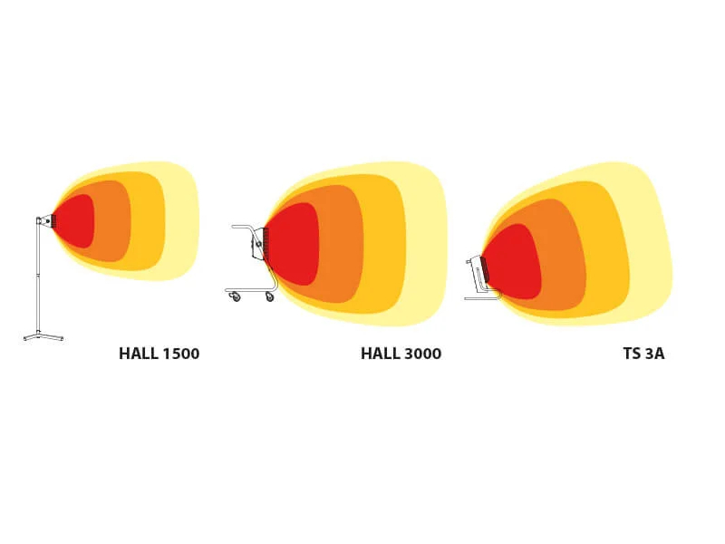Pentru încălzirea obiectelor, corpurilor sau pereților în interior și în exterior. Pentru uscarea pereților tencuiți. Căldura infraroșie pătrunde în perete și evaporă umezeala din interiorul acestuia. În schimb, încălzitoarele cu convecție creează o suprafață uscată care reține umezeala în perete. Pentru încălzirea obiectelor sau a spațiilor interioare închise. În schimb, cu alte metode, aerul cald se dispersează rapid în întreaga încăpere.